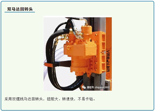 3、強(qiáng)有力的雙速液壓行走機(jī)構(gòu),越野能力強(qiáng),大扭矩的雙回轉(zhuǎn)馬達(dá)可以輕松應(yīng)對卡鉆;