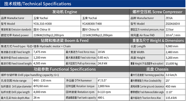 ZGYX-453T鉆機(jī)參數(shù)