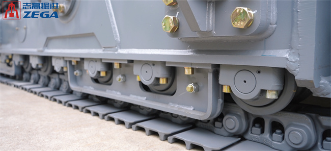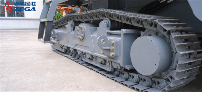 第一部份:履帶總成加長(zhǎng)升級(jí):履帶總成全面升級(jí),從6個(gè)承重輪增加到7個(gè),履帶節(jié)數(shù)從42節(jié)提升到46節(jié),穩(wěn)定性和通過性更強(qiáng),讓鉆機(jī)在各種復(fù)雜地形中都能如履平地。