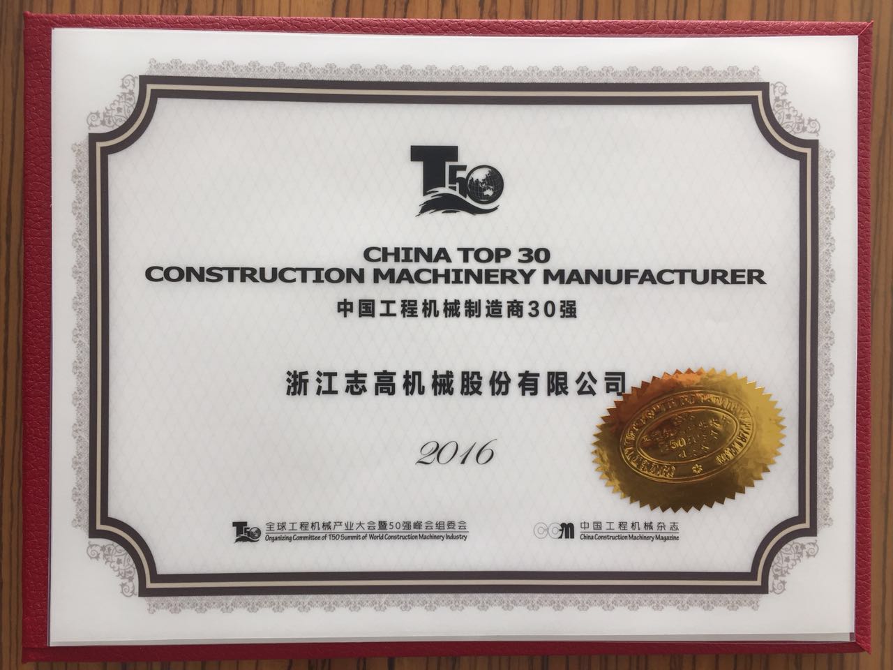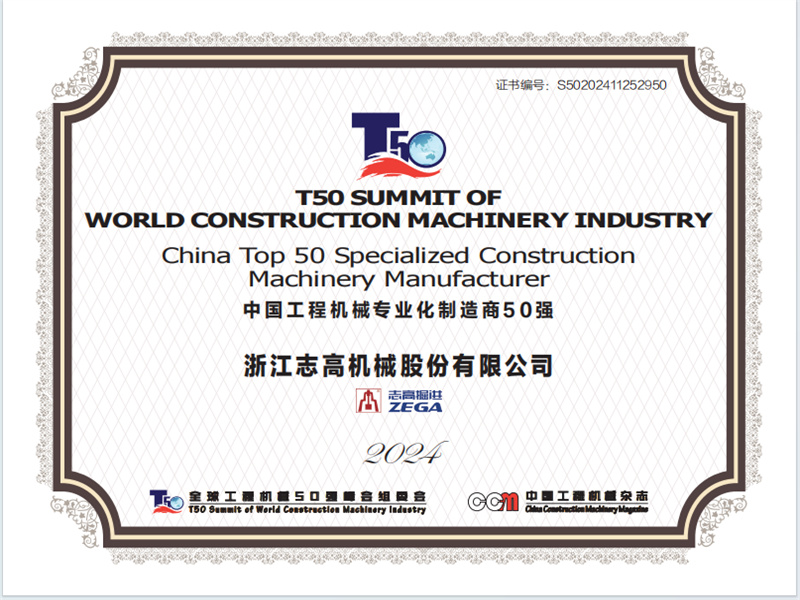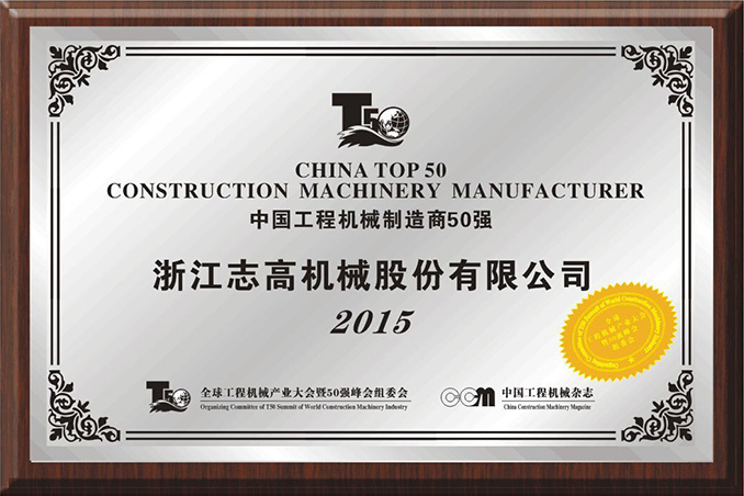 中國(guó)工程機(jī)械制造商50強(qiáng)證書(shū) -