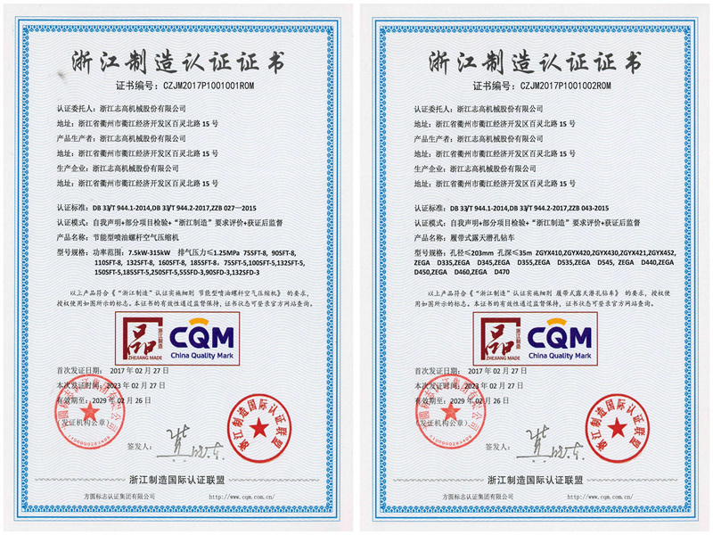 浙江制造證書(shū) -